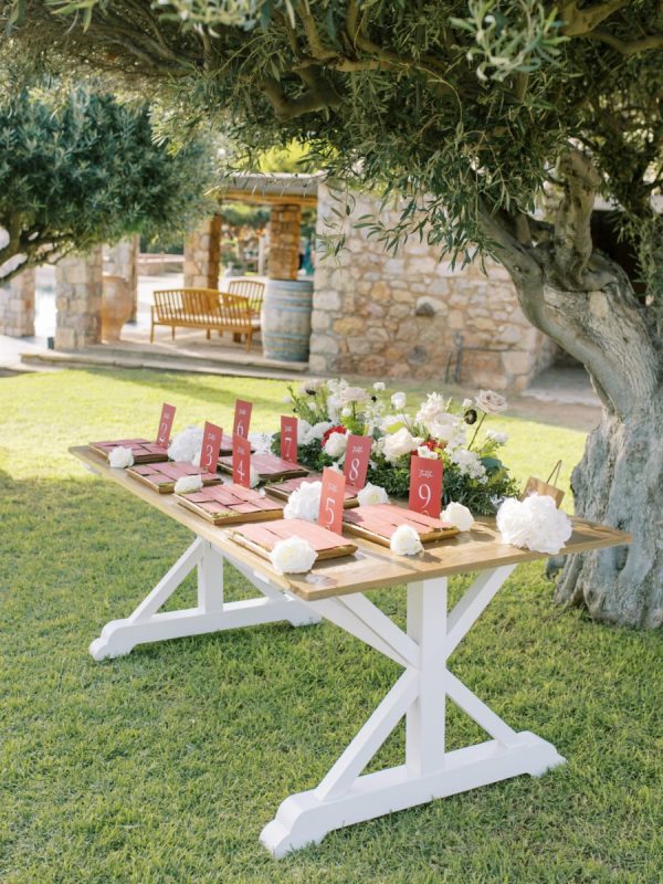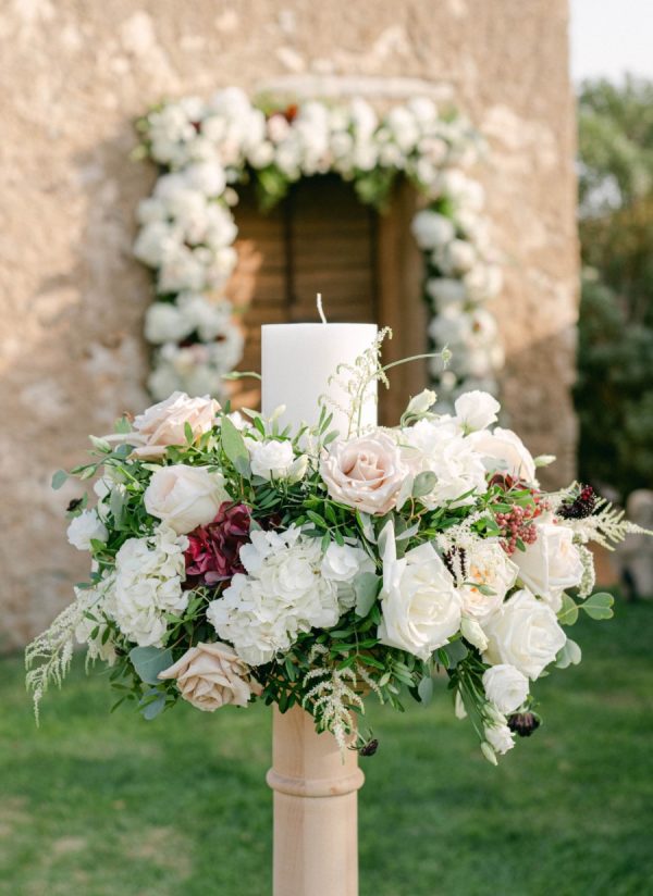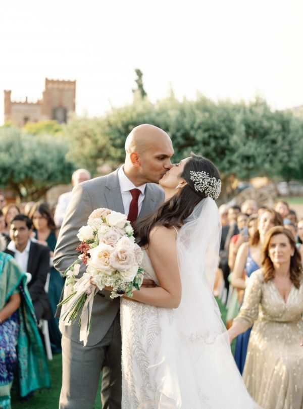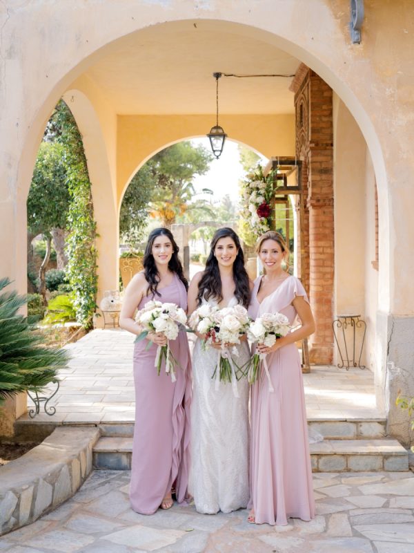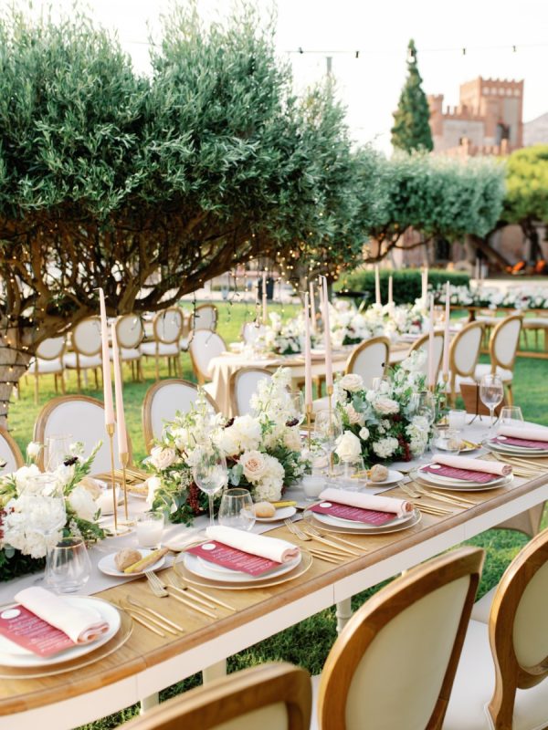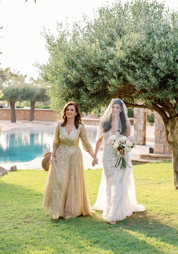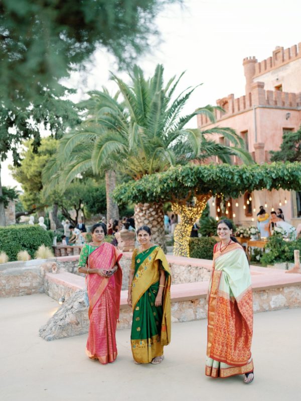 Lama and Gautam aimed for a classic and elegant affair in which the venue itself would serve as the stage for their nuptials. Pyrgos Melissourgou, an ancient castle in the south of Athens was selected for its history and old charm, lush olive grove and picturesque chapel. The 15 acres private estate with gorgeous sea views provided the ideal backdrop for both the ceremony and reception.