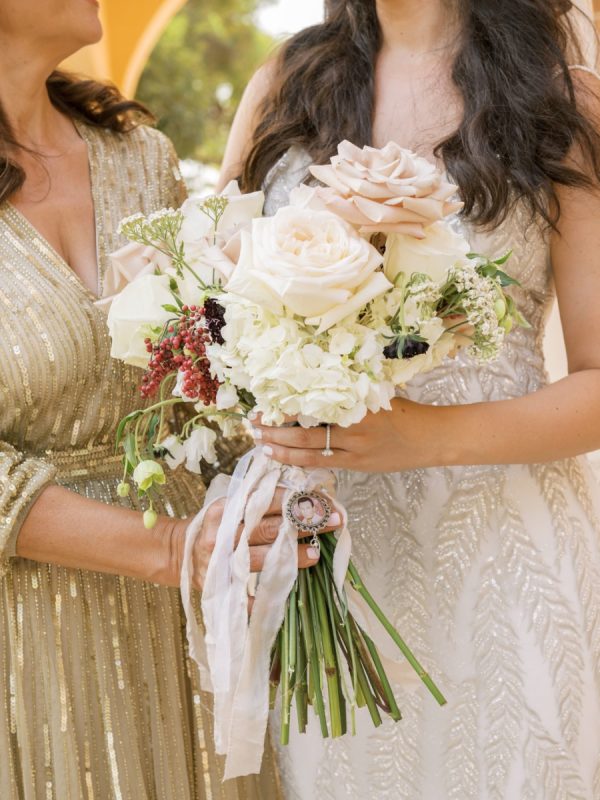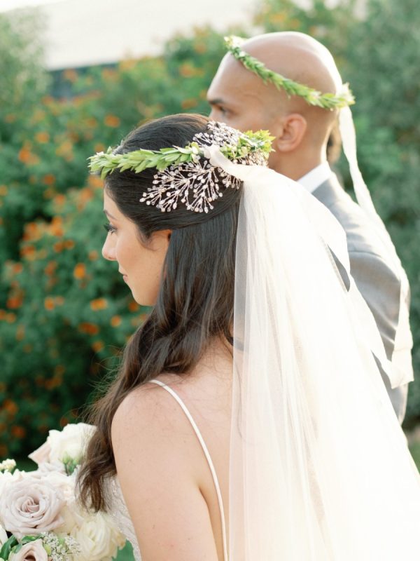 [field title=”Special Detail #1″]The bride walked down the aisle with her mother at the Greek Orthodox ceremony where several ancient rituals were performed such as the crowning of the couple with greenery wreaths as a symbol of glory and honor. Lama and Gautam also took three sips of wine from a shared cup which represents life and symbolizes the mutual sharing of joy and sorrow. Following the common cup ritual, the priest led them around the altar three times on which rested a bible and a cross. In this final act, the couple took their first steps as a married couple.[/field]