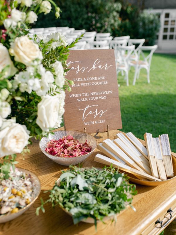 [field title=”Special Detail #3″]The couple chose the lotus as their wedding logo as a nod to the groom’s heritage and representing both immortality and longevity in India. A lotus insignia was showcased on the wax seal of the stationery suite and the menus as well as on the edge of the petal cones. [/field]
