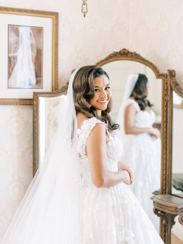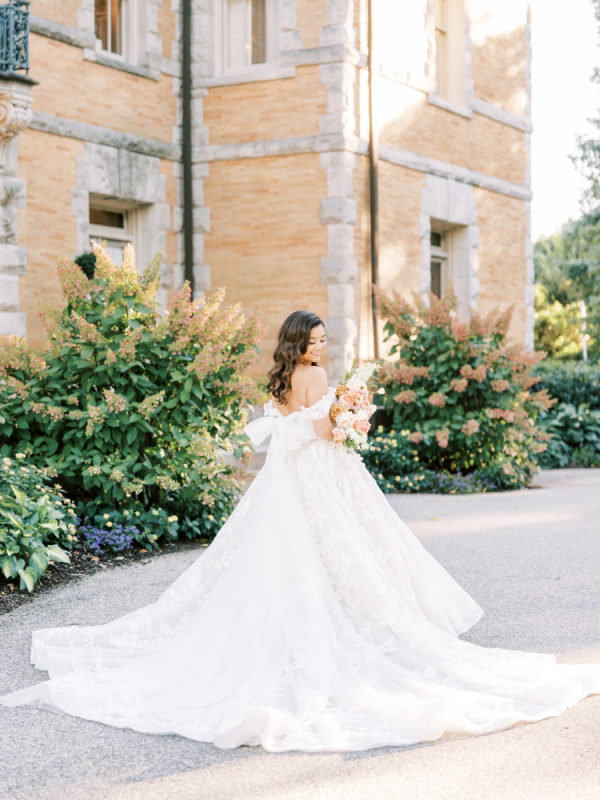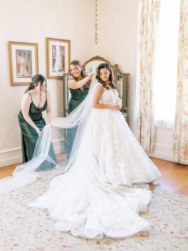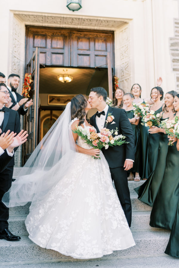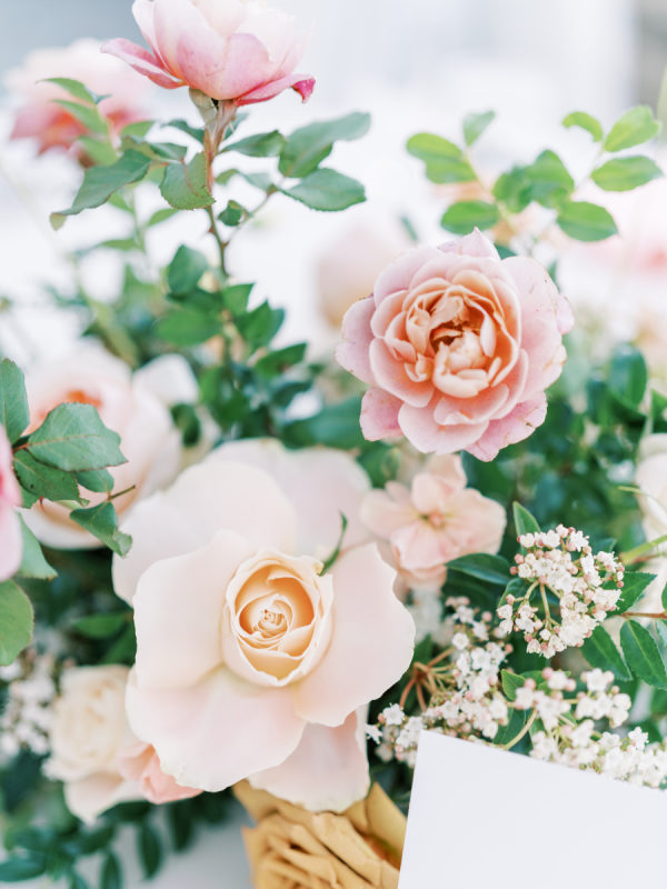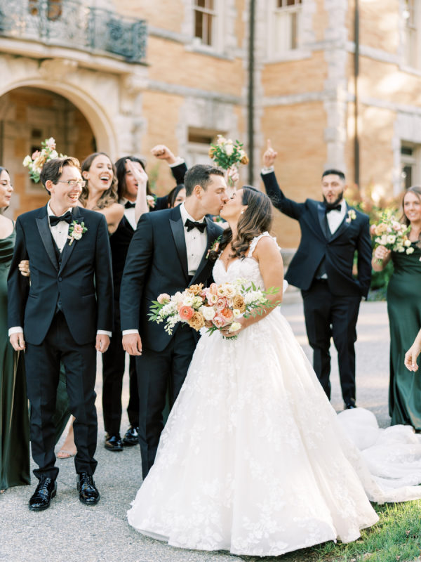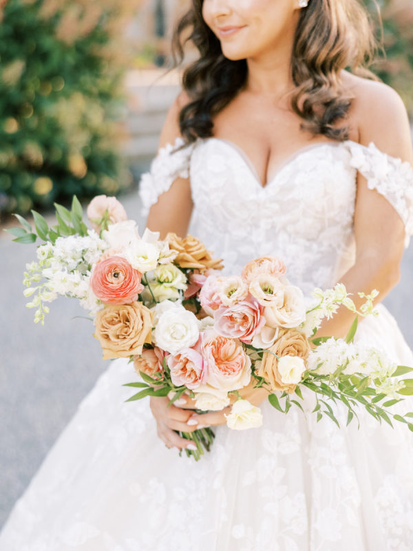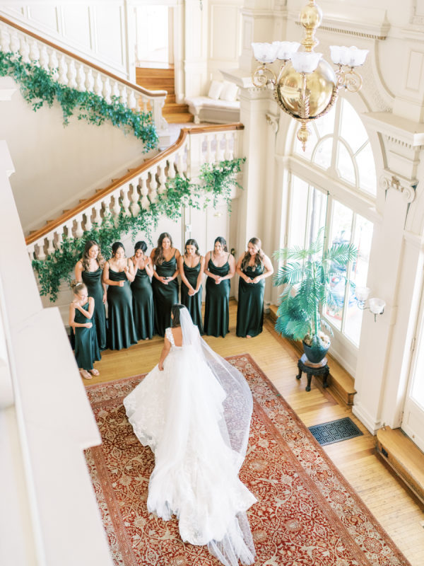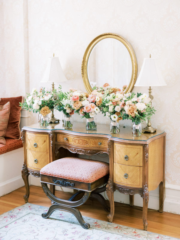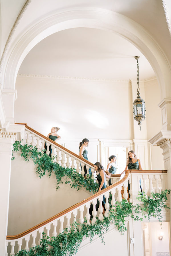 [field title=”Florals & Decor”]Florals by Whisper & Brook Flower Co. brought my vision to life and made the stunning venue even prettier. Lush, full-bodied flowers and greenery tied the venue, bridal party looks, and design details together under one coordinating color palette. Natural, organically shaped bouquets and ‘growing’ garden arrangements throughout the venue added a romantic whimsy. A favorite focal point was airy greenery adorning the grand staircase.