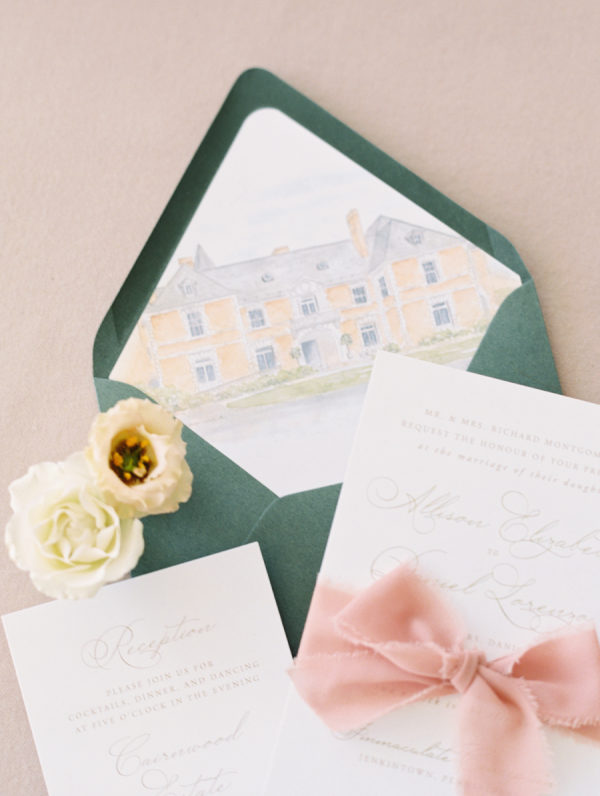 [field title=”Design / Vibe / Vision”]The late summer golden hours of September were the inspiration behind our color palette, and Cairnwood’s European-inspired style was the perfect setting to build upon our vision for a romantic, fairytale day.[/field]