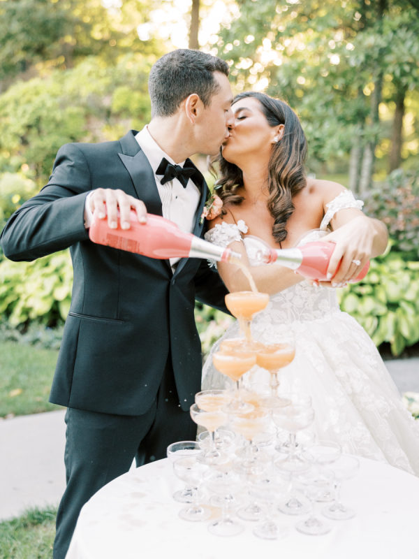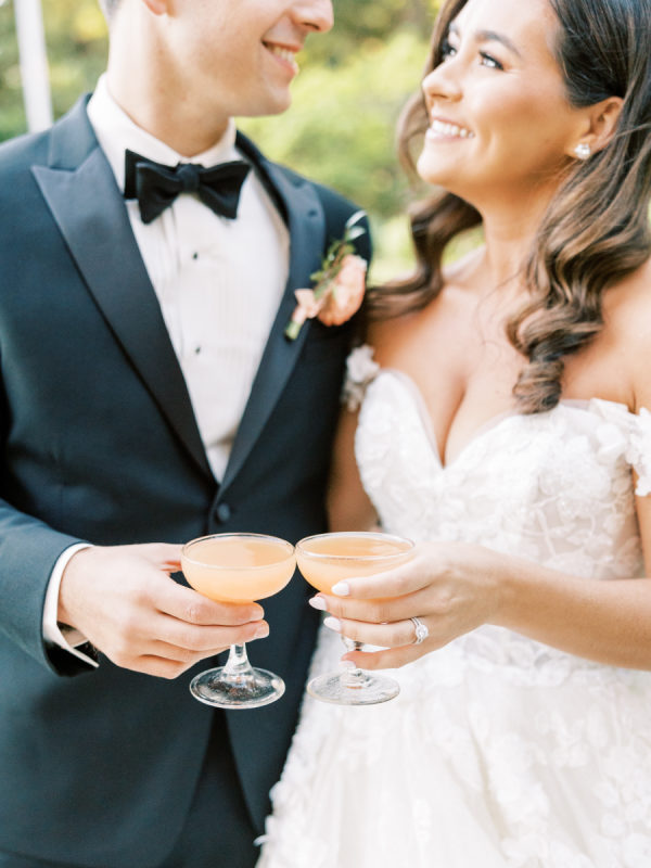 [field title=”Food & Drink”]We kicked off cocktail hour with a flowing peach bellini tower! In lieu of a traditional champagne toast, guests raised glasses of this sweet mix of white peach juice and prosecco. This was my mom’s idea – we both love anything peach!