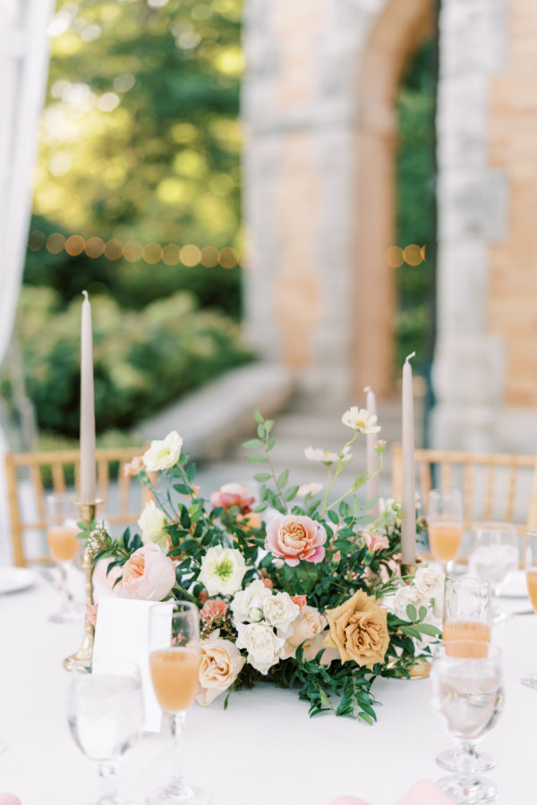 [field title=”Wedding Colors”]The color palette for this wedding included shades of peach, blush, toffee, yellow, gold, ivory, and olive green, to complement the colors of Cairnwood Estate.[/field]