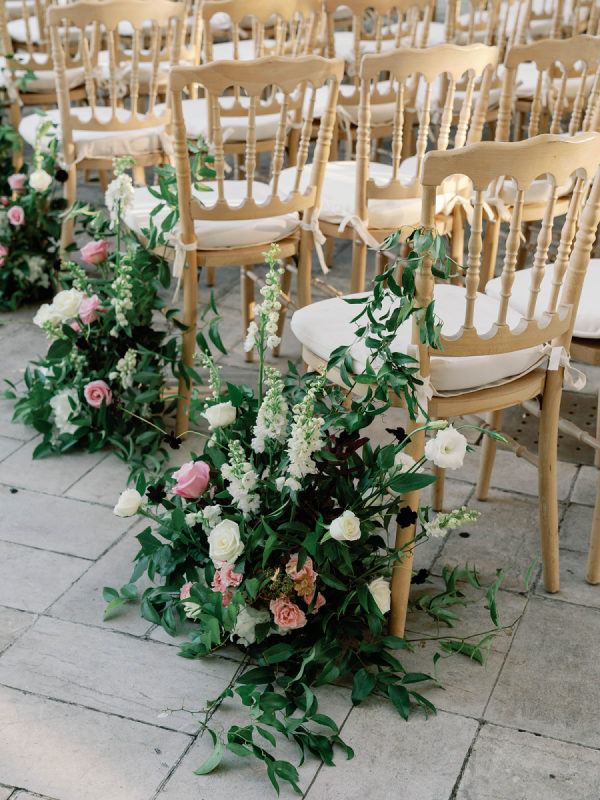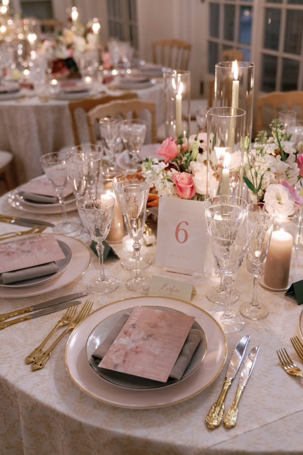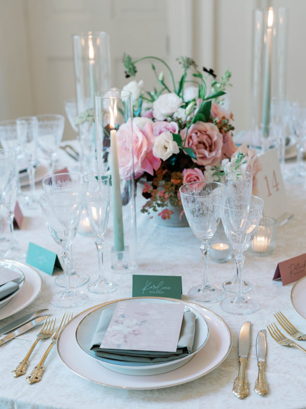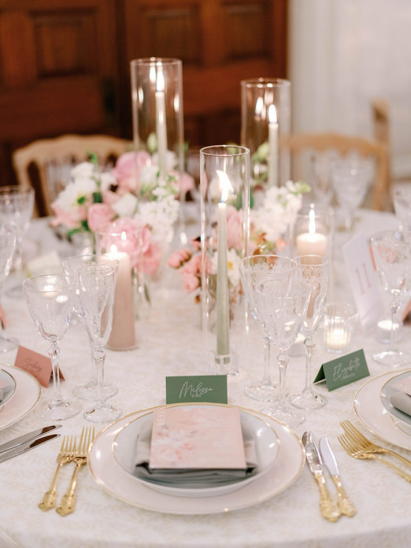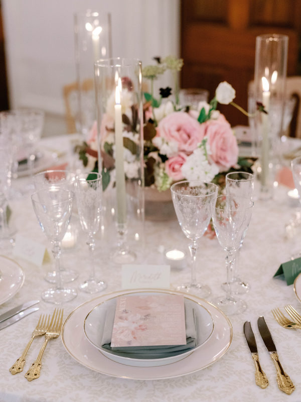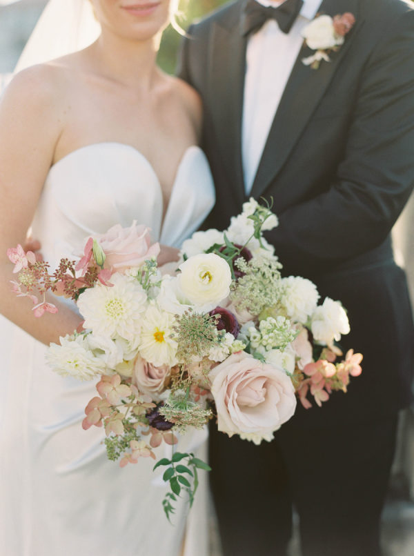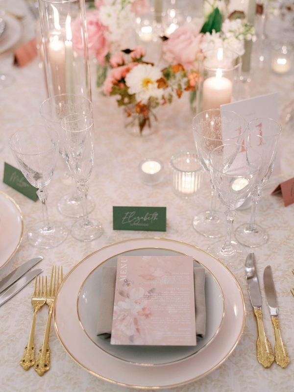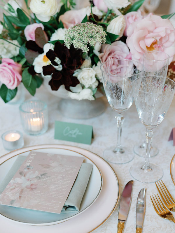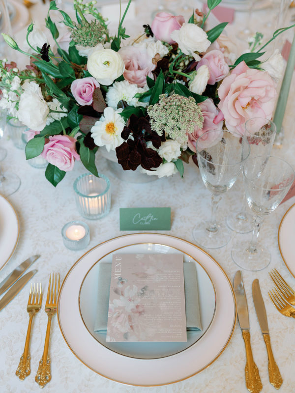 [field title=”Florals & Decor”]In addition to the venue setting, we drew inspiration from Lili’s French family roots and her hometown of Bordeaux, France. A luxe, yet laid back aesthetic with a soft color palette of sage green, mauve, pinks and burgundy set the scene for the romantic, timeless aesthetic.