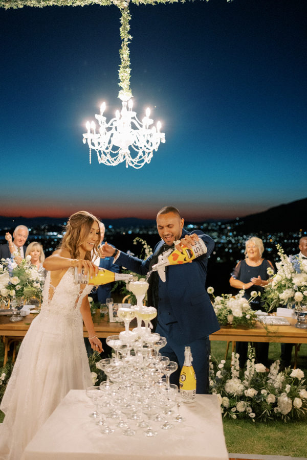[field title=”Food & Drink”]The drinks and food served at the wedding reception were a true highlight of the evening. The reception venue provided a range of options for guests to enjoy, including champagne for toasting, a variety of aperitifs to suit everyone’s taste, and a selection of sweet and savory treats. Eclair cakes, cupcakes, finger food, and tapas catering were also available, offering a delicious range of options for guests to enjoy while they celebrated the happy couple. The drinks and food were expertly prepared and served by the venue’s talented staff, ensuring that every guest was well taken care of and had a memorable time at the wedding. Whether sipping on a crisp glass of champagne, indulging in a delicious eclair cake, or sampling a selection of tapas, the guests were treated to an unforgettable culinary experience that they will always cherish.[/field]