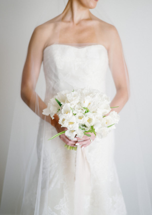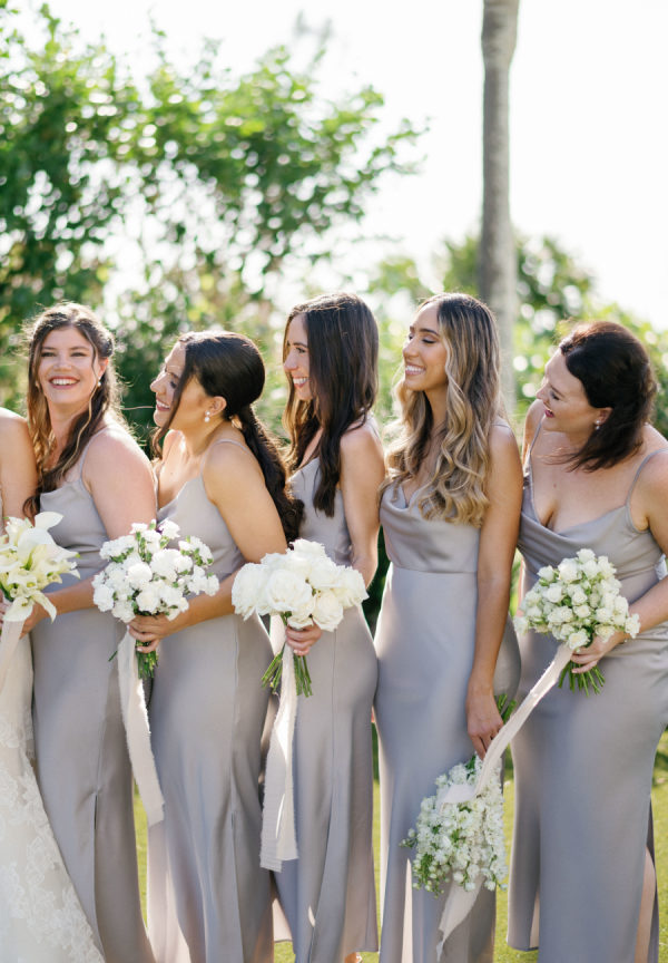 [field title=”Bridesmaid Dresses”]The soft grey silk BHLDN spaghetti strapped gowns were a perfect accent to the soft modern palette providing just the right amount of contrast from the stark white bouquets. Our Brides-man chose to match the groomsmen with a black tux but stood out from the crowd with a bouquet of greenery. [/field]