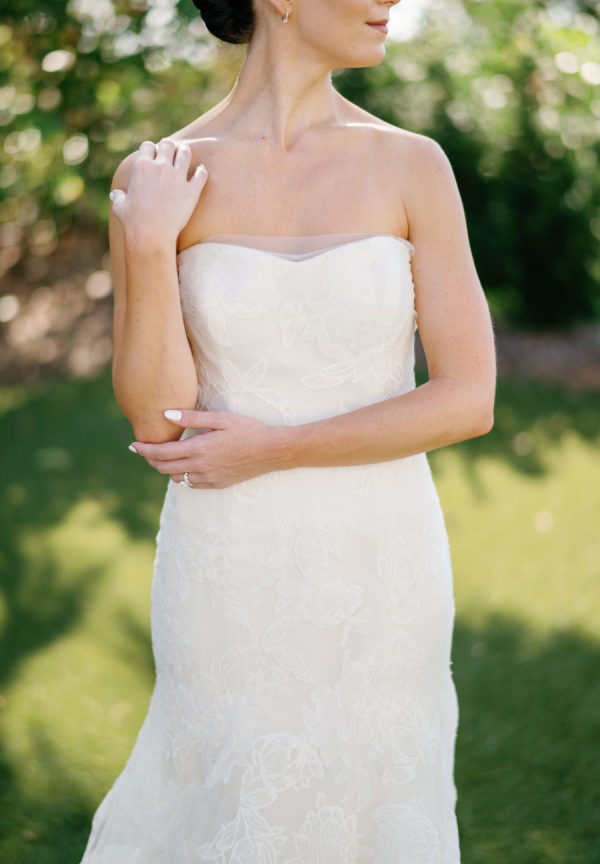 [field title=”Wedding Gown”]The gown was a strapless Vera Wang stunner with tulle overlay and large modern floral embroidery . The detached tulle shawl, that was added for the ceremony, provided a surprise for the groom when Madalyn took her first steps toward him down the aisle. [/field]