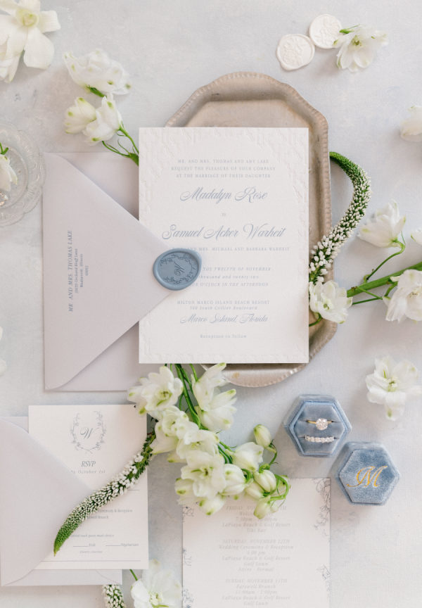 [field title=”Special Detail #3″]The couples wedding was originally planned for Captiva Island, Florida. Unfortunately the devastation of Hurricane Ian impacted Captiva Island greatly destroying their venue, and they had to pivot their entire wedding in 7.5 weeks. Their incredible planner JetSetWed (also personally impacted by the hurricane herself) immediately got to work securing the couple a new venue. And we mean immediately. With no power to the region, and incredibly spotty (read; mostly non existent) cell coverage – Kehrin of JetSetWed still managed to use the power of social media (Instagram) to find an open venue for the couple’s date. Instagram, surprisingly, was one of the only forms of communication that would send out through stories, during the days following the storm. It was truly a miracle – and a testimony to having professionals on your wedding team. Where there is love – there is always a way! And plan B in Marco Island – well we think you’d never guess it was ever plan B. :) – Hunter Ryan Photo[/field]