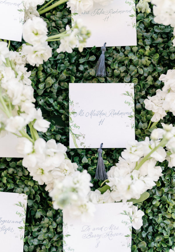 [field title=”Special Detail #2″]Lorena of Script Me Pretty created place cards for each guest that framed their names in A floral X pattern or O pattern to identify their meal choice.[/field]
