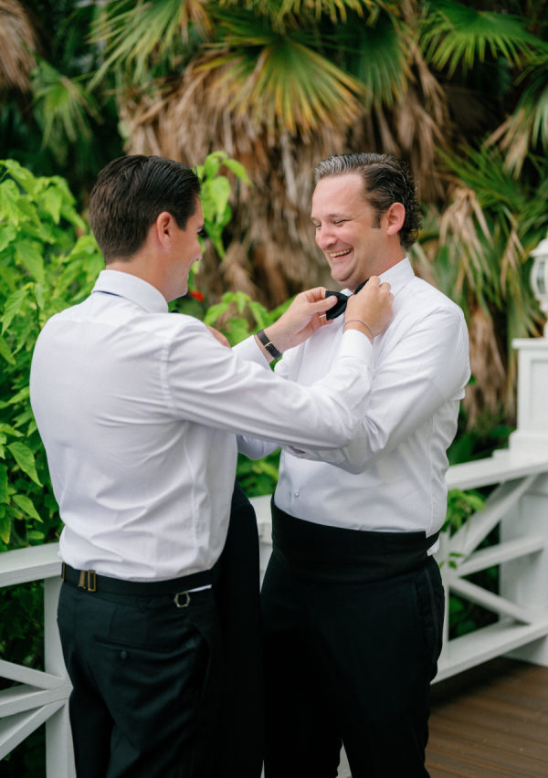 The men were in traditional black tuxedos, with the groom being in an Enzo Custom traditional tuxedo.